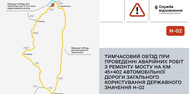 У Тернопільській області тимчасово заборонять рух транспорту на ділянці дороги державного значення Н-02 /М-06/ — Кременець — Біла Церква — Ржищів — Канів — Софіївка.