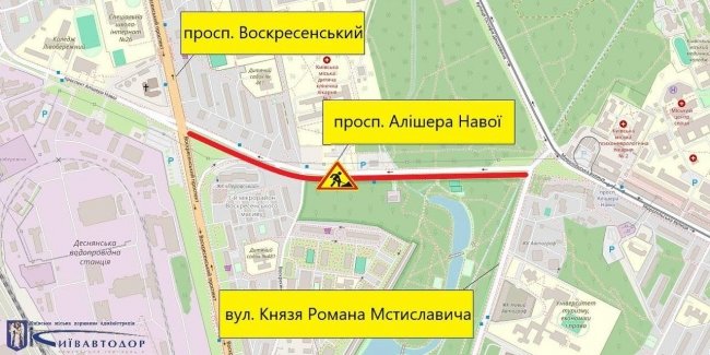 Обмеження пов’язані з ремонтом дорожнього покриття на ділянці проспекту — від просп. Воскресенського до вул. Князя Романа Мстиславича.